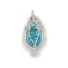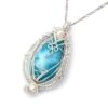 I created this unique, wire wrapped turquoise necklace, by weaving various gauges of fine silver and sterling silver wires, into this elegant and intricate gemstone jewelry.