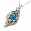 I created this unique, wire wrapped turquoise necklace, by weaving various gauges of fine silver and sterling silver wires, into this elegant and intricate gemstone jewelry.