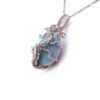 I created this unique, wire wrapped turquoise necklace, by weaving various gauges of fine silver and sterling silver wires, into this elegant and intricate gemstone jewelry.