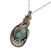 I bought this wire wrapped necklace for a colleague who is a graphic designer and a digital queen. So as you can imagine trying to find the perfect piece of unique jewelry was quite a challenge – for someone who is so innovative and beyond stylish. But this piece spoke to me because the blue stone was crafted in the shape of half a butterfly like a butterfly wing. My colleague was dubbed the butterfly for her own Metamorphic designs. She could not have been any happier. And here she is sporting the coolest necklace in town.\n\nI also have to add that working with the designer was pretty extraordinary. She maintained such a high level of ongoing communication with me while waiting for delivery. She is extremely personable flexible and responsive. I’m looking for my next purchase.